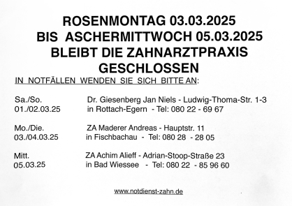 Wir sind ab Donnerstag (den 06.03.2025) ab 8Uhr wieder für Sie da!