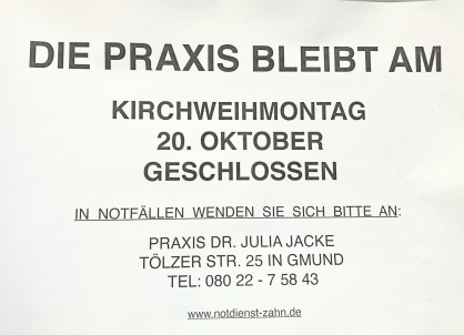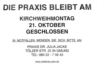 Wir sind ab Dienstag wie gewohnt ab 8 Uhr wieder für Sie da!