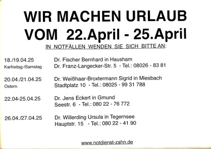 Für Notfälle am Wochenende oder an Feiertagen finden Sie unter