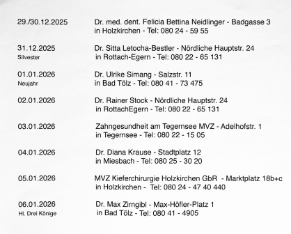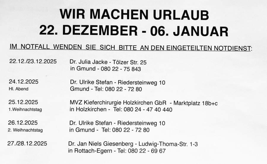 Für Notfälle am Wochenende oder an Feiertagen finden Sie unter